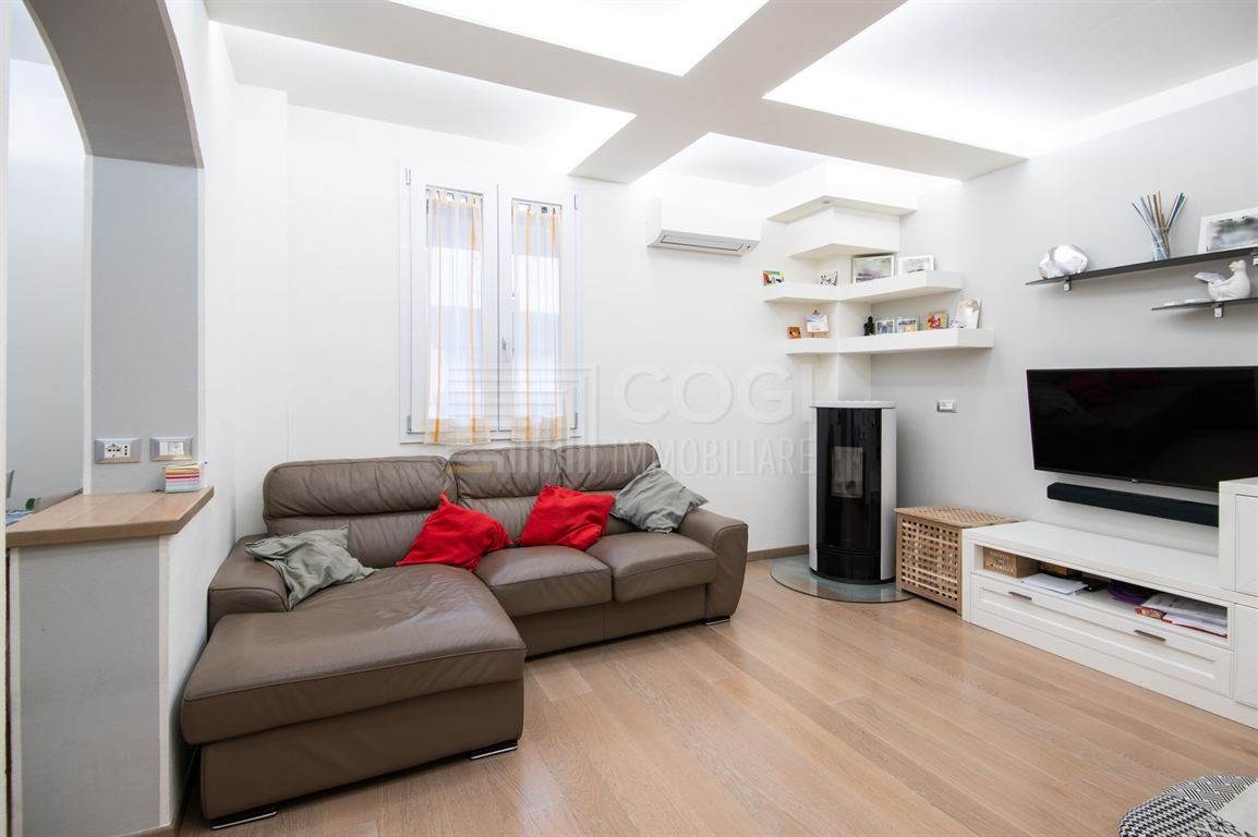 Si tratta di una soluzione con ingresso indipendente e piccolo giardino privato; l'area esterna ci permette comodamente di parcheggiare l'auto all'interno della propria proprietà oppure di poter lasciare il vostro animale domestico all'aria aperta in vostra assenza. Abbiamo uno sviluppo su due livelli con al piano terra l'ingresso e un ampio garage con basculante elettrica. L'appartamento, che si sviluppa completamente al piano primo, è composto da un luminosissimo soggiorno, una cucina abitabile a vista con affaccio sul balcone, due ampie camere da letto e un bagno finestrato.