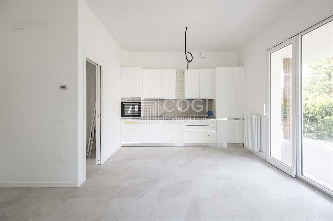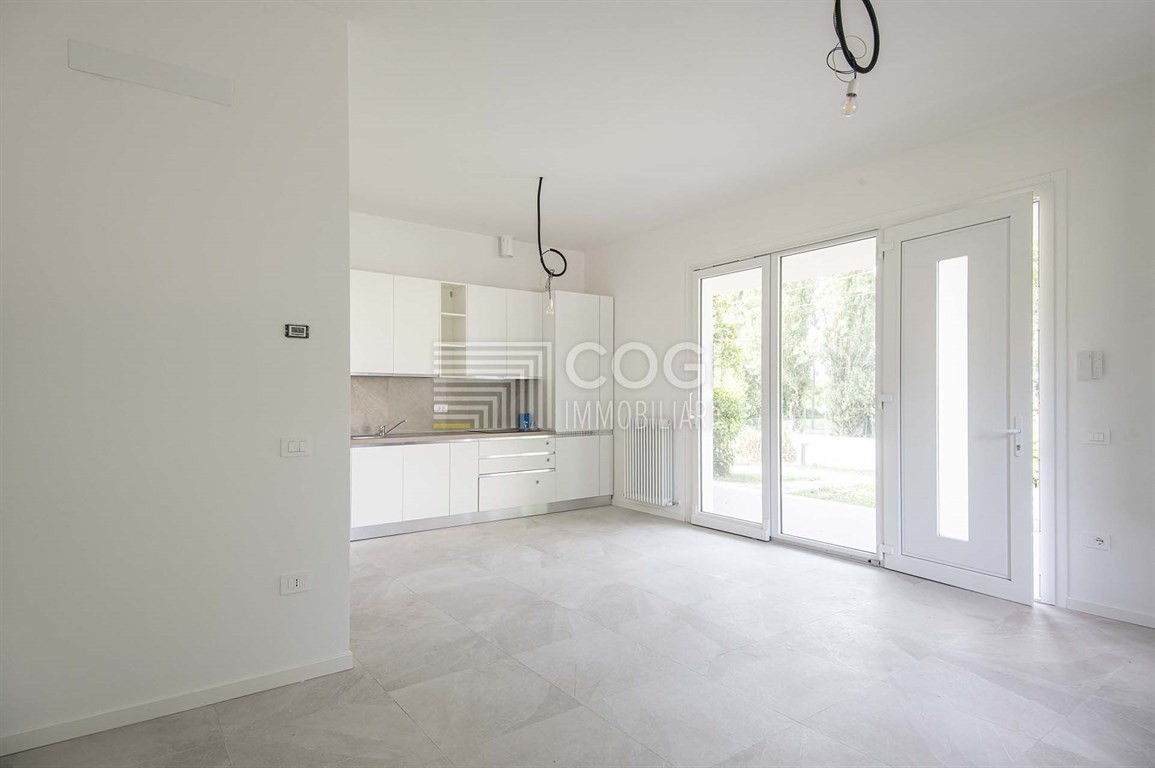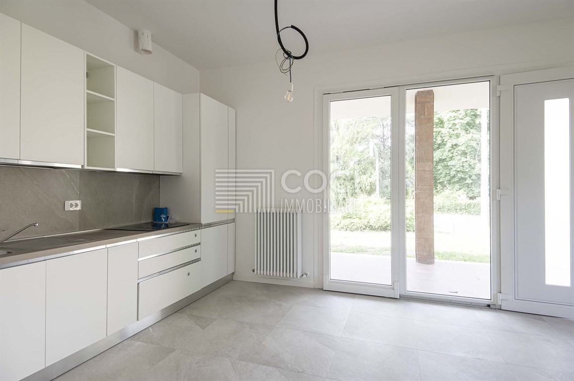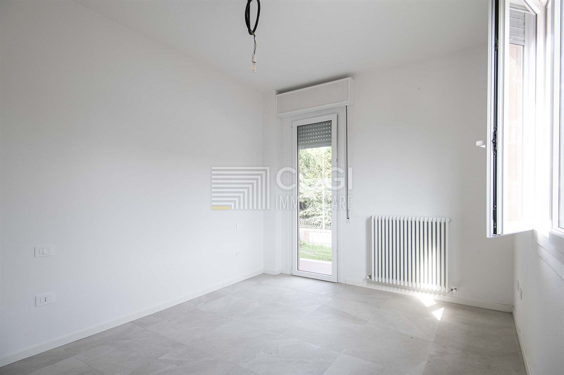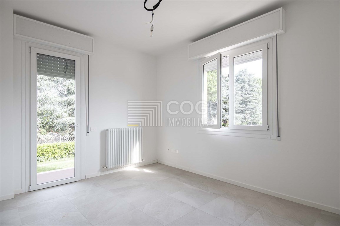 Molto luminoso, l'alloggio, con entrata indipendente, si affaccia su due strade con ampio porticato e giardino perimetrale ad uso esclusivo.